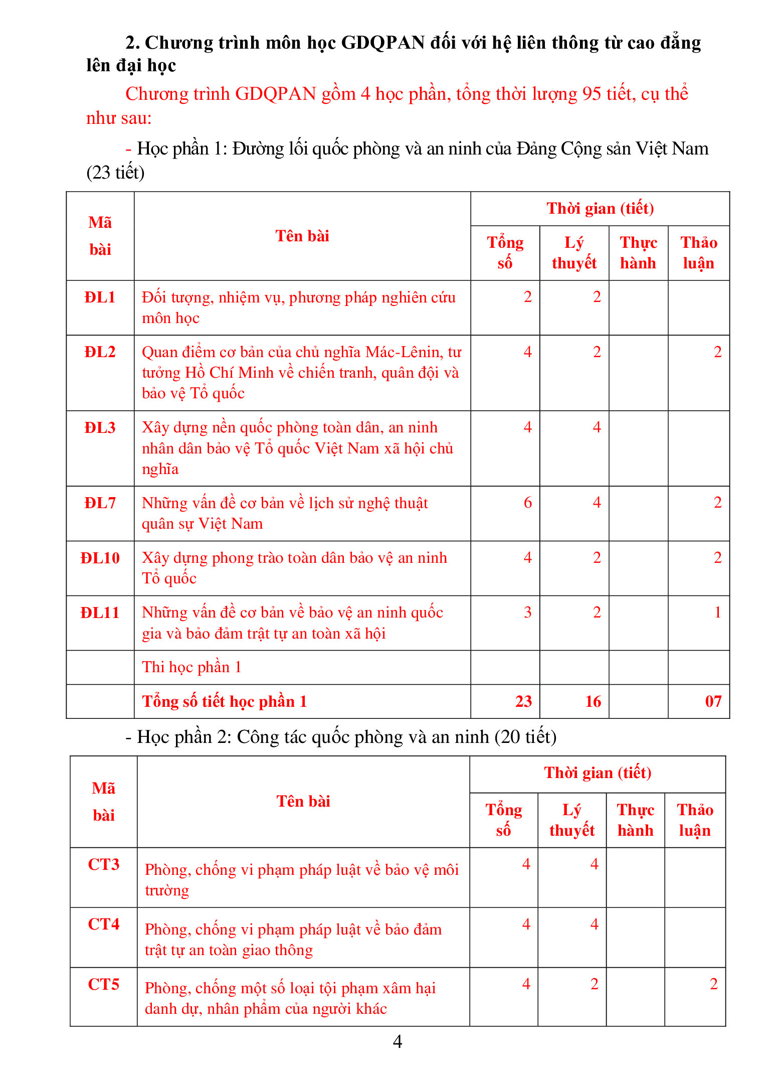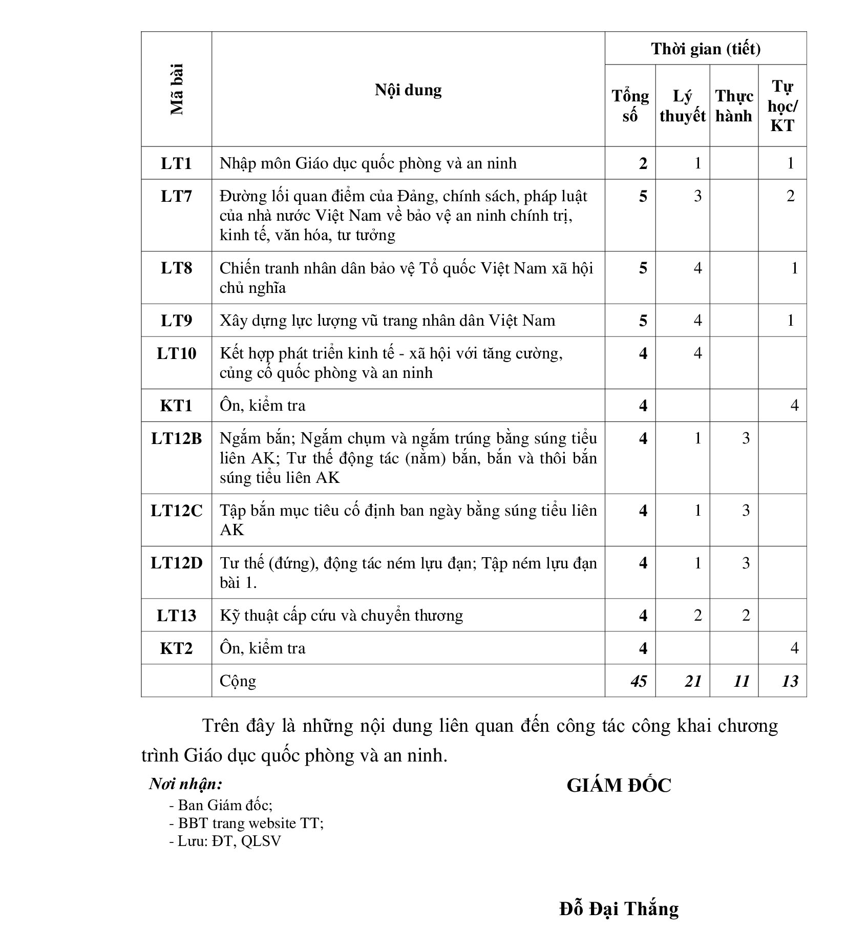 CHƯƠNG TRÌNH GIÁO DỤC QUỐC PHÒNG VÀ AN NINH