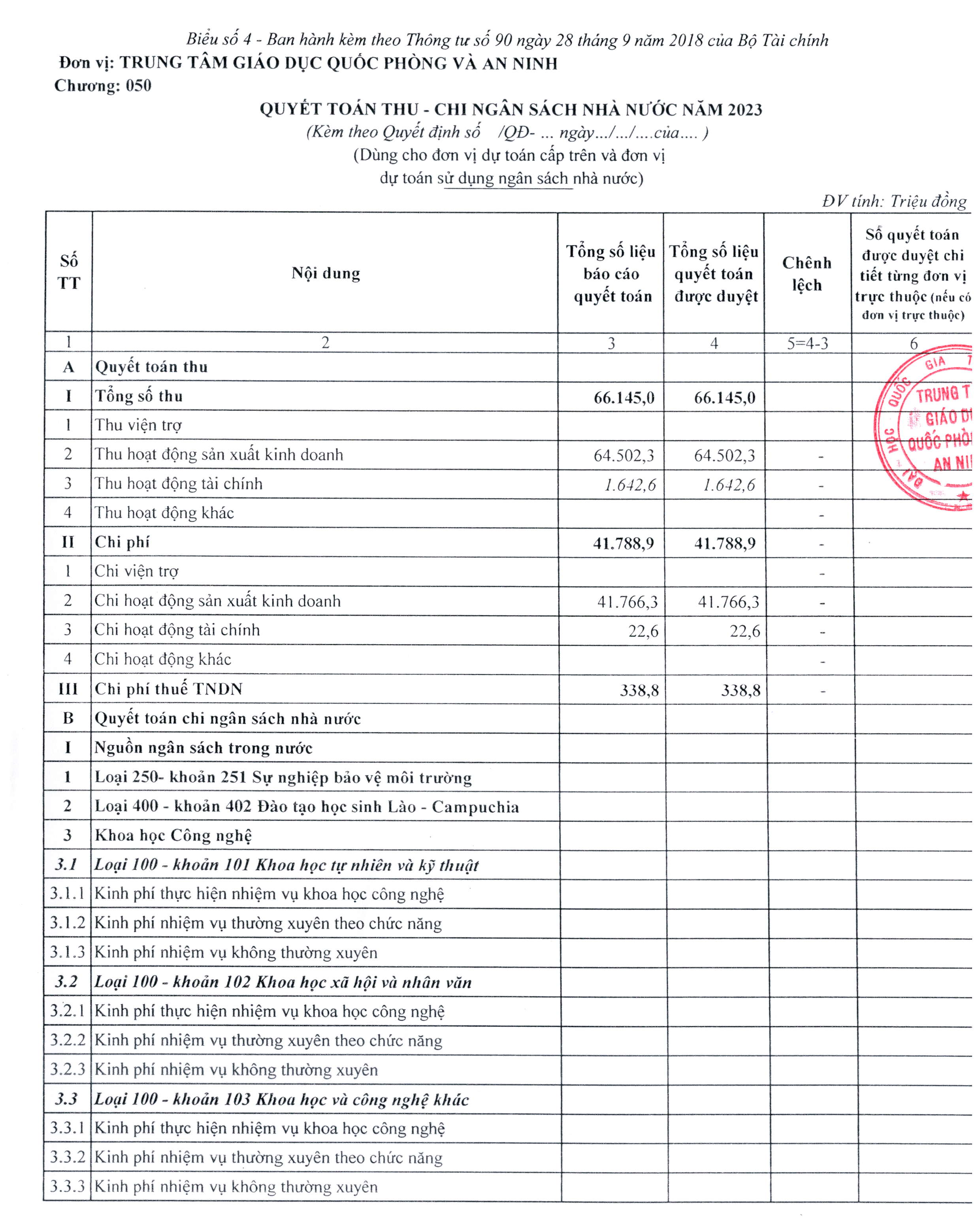 Mức thu giá dịch vụ môn học GDQPAN giai đoạn 2023-2026
