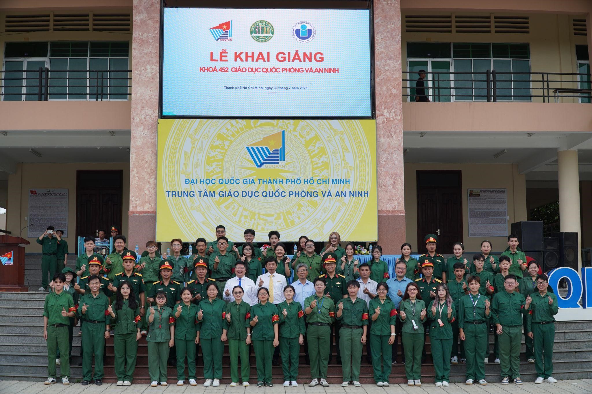 (30/07/2025) Sáng nay, ngày 30/7 Trung tâm Giáo dục quốc phòng và An ninh (GDQPAN), Đại học Quốc gia Thành phố Hồ Chí Minh (ĐHQG-HCM) đã long trọng tổ chức Lễ Khai giảng Khóa học 452 môn học Giáo dục Quốc phòng và An ninh cho 4.831  sinh viên tại hai trường Trường Đại học Nông Lâm và Trường Đại học Quốc tế, ĐHQG-HCM