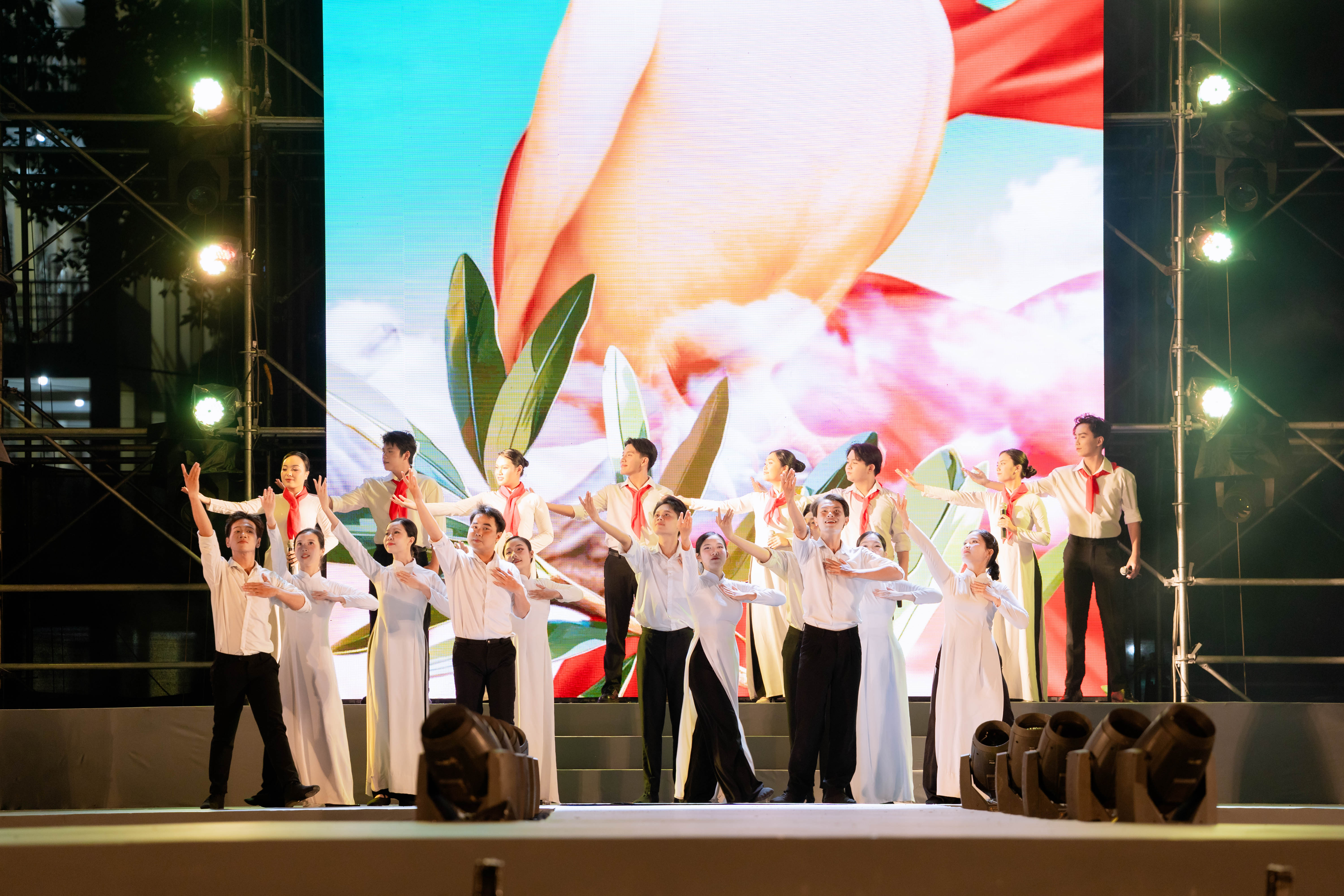 Với gần 30 nghệ sĩ và khoảng 500 sinh viên ĐHQG-HCM tham gia biểu diễn, đêm nghệ thuật đã mang đến không khí hào hùng, sôi nổi, khơi dậy tinh thần yêu nước và ý chí cống hiến trong thế hệ trẻ.