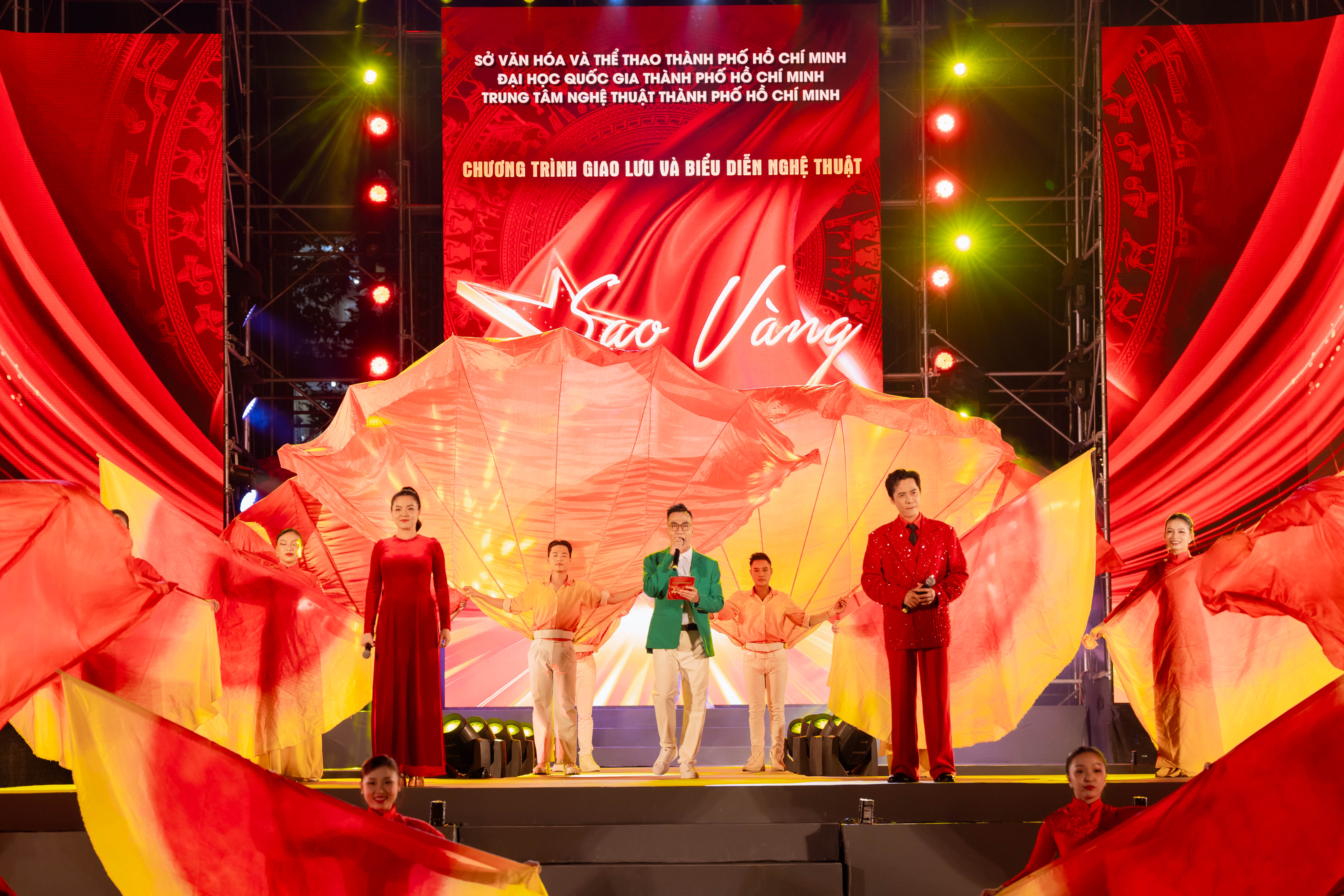 Tối 28/11/2025, tại Trung tâm Giáo dục Quốc phòng và An ninh ĐHQG-HCM, Sở Văn hóa-Thể thao TP.HCM phối hợp cùng ĐHQG-HCM tổ chức chương trình giao lưu, biểu diễn nghệ thuật với chủ đề “Sao Vàng Tuổi Trẻ”. Chương trình nhằm quảng bá âm nhạc truyền thống cách mạng, ca ngợi Đảng, Bác Hồ, những thành tựu của TP.HCM và đất nước; đồng thời góp phần giáo dục tư tưởng chính trị, thẩm mỹ, hun đúc lòng tự hào dân tộc, tình yêu quê hương, đất nước cho sinh viên.