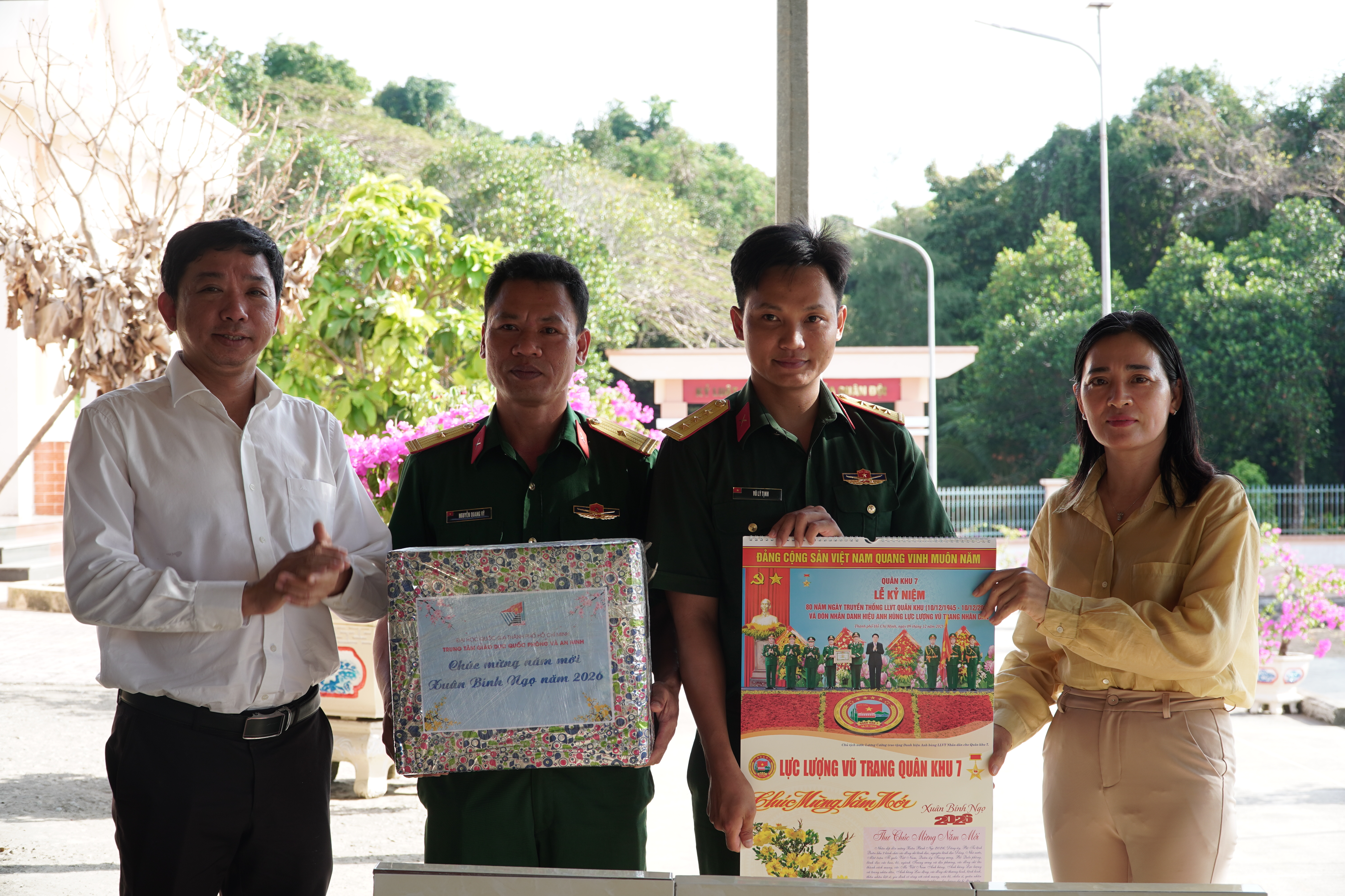 Nhân dịp Tết Nguyên đán Bính Ngọ năm 2026, từ ngày 10 đến 13/01, đoàn công tác của Trung tâm Giáo dục Quốc phòng và An ninh (GDQPAN), Đại học Quốc gia Thành phố Hồ Chí Minh (ĐHQG-HCM) đã đến thăm, chúc tết cán bộ, chiến sĩ Trung đoàn 152/Quân khu 9, các lực lượng đang làm nhiệm vụ trên đảo và cấp ủy, chính quyền, nhân dân đặc khu Thổ Châu, tỉnh An Giang.