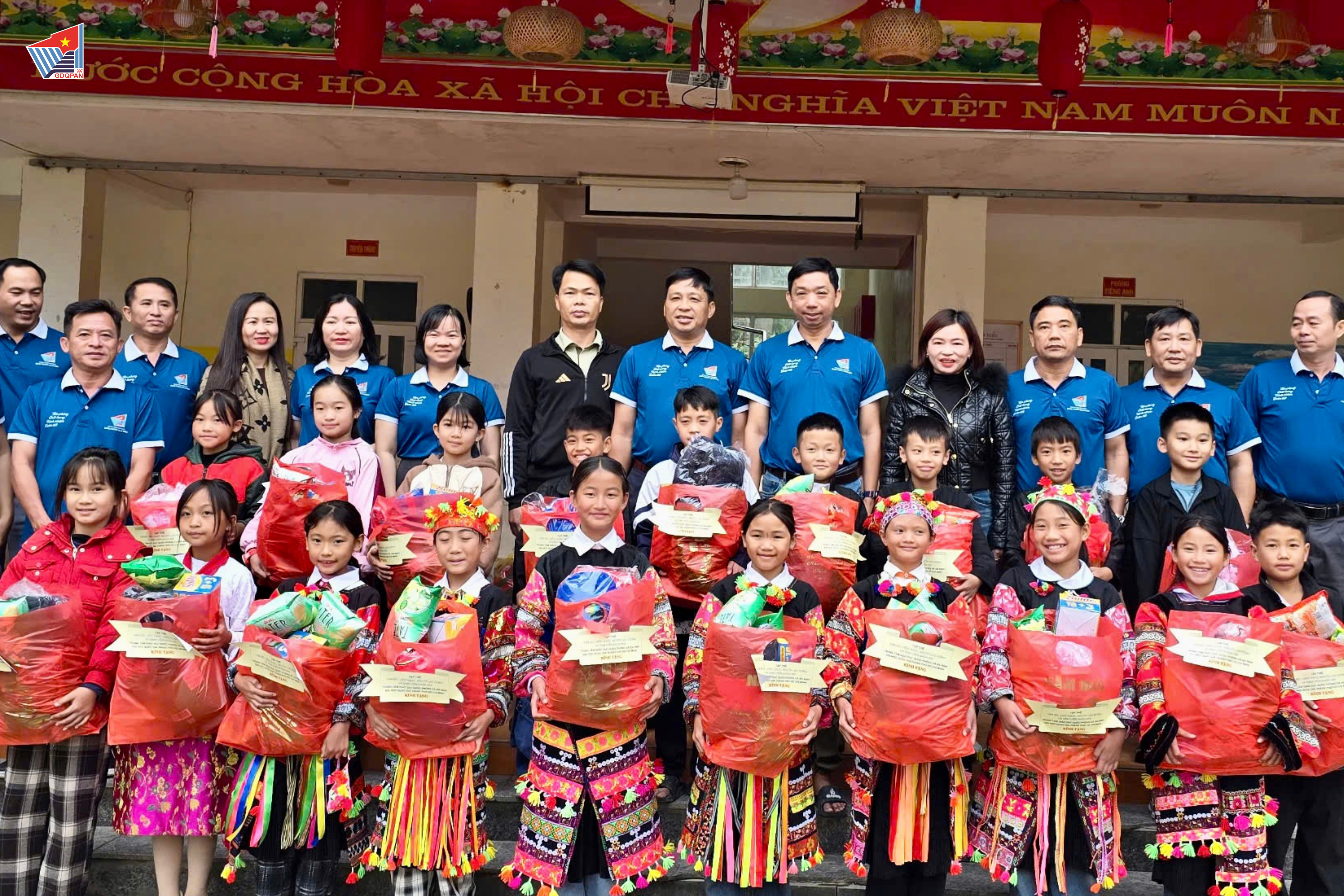 Trao tặng một số nhu yếu phẩm thiết yếu cho nhà trường và 20 phần quà cho học sinh Trường THDTBT Lũng Cú