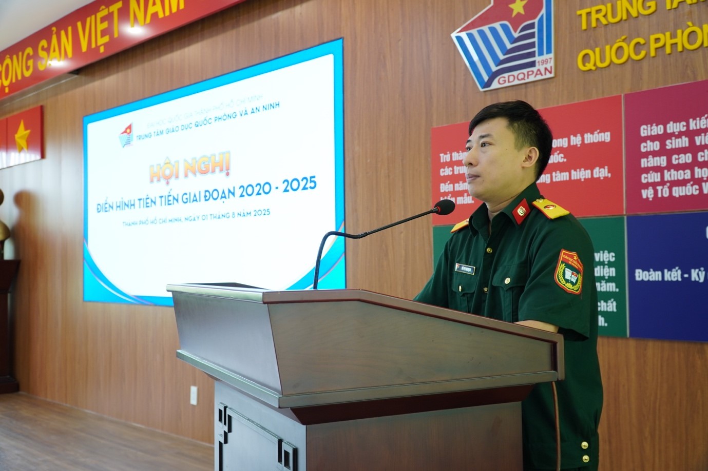 TRUNG TÂM GDQPAN, ĐHQG-HCM TỔ CHỨC THÀNH CÔNG HỘI NGHỊ ĐIỂN HÌNH TIÊN TIẾN GIAI ĐOẠN 2020 – 2025Thượng tá Nguyễn Nhâm, Giảng viên khoa Quân sự trình bày tham luận tại Hội nghị