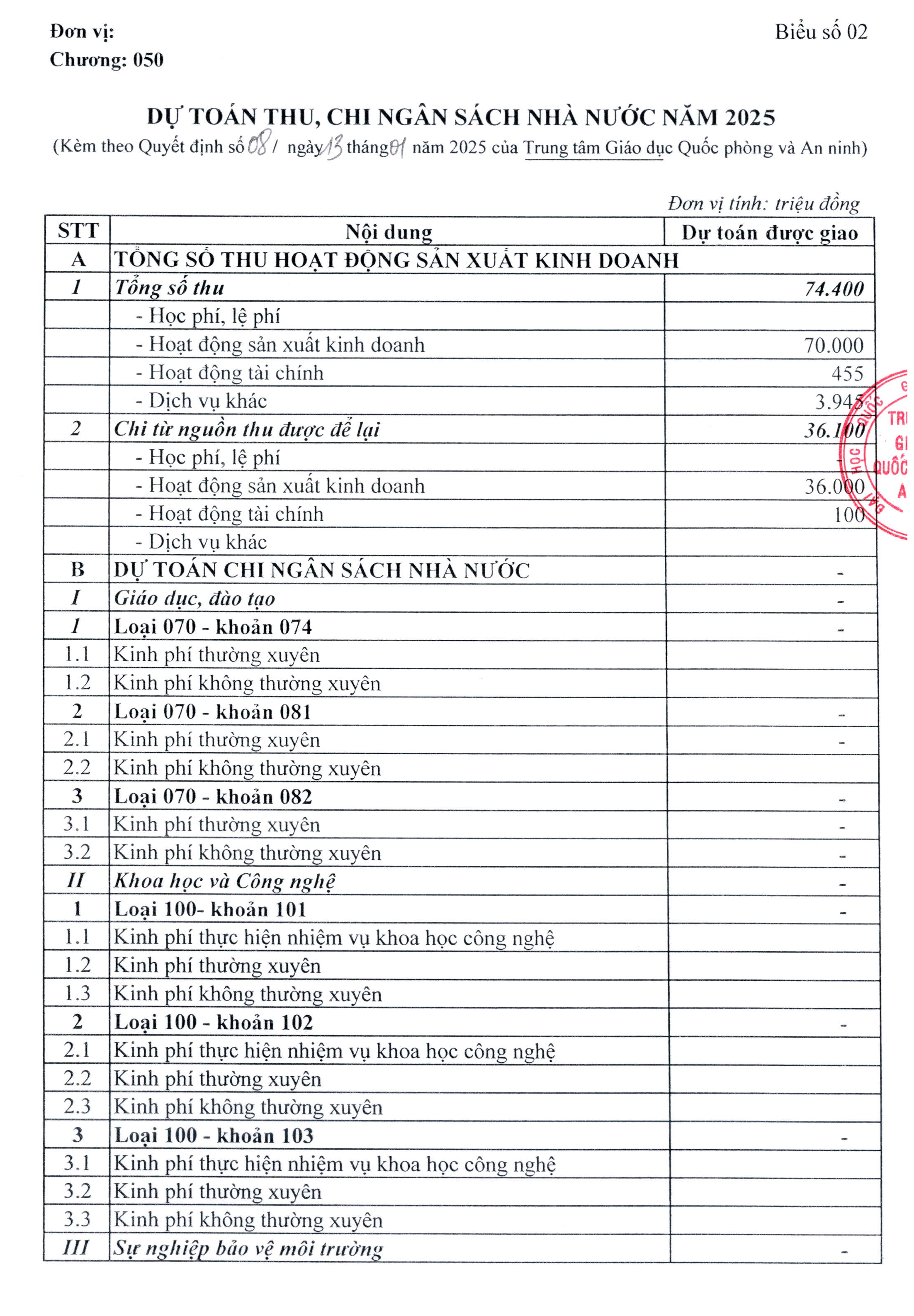 Công khai dự toán năm 2025