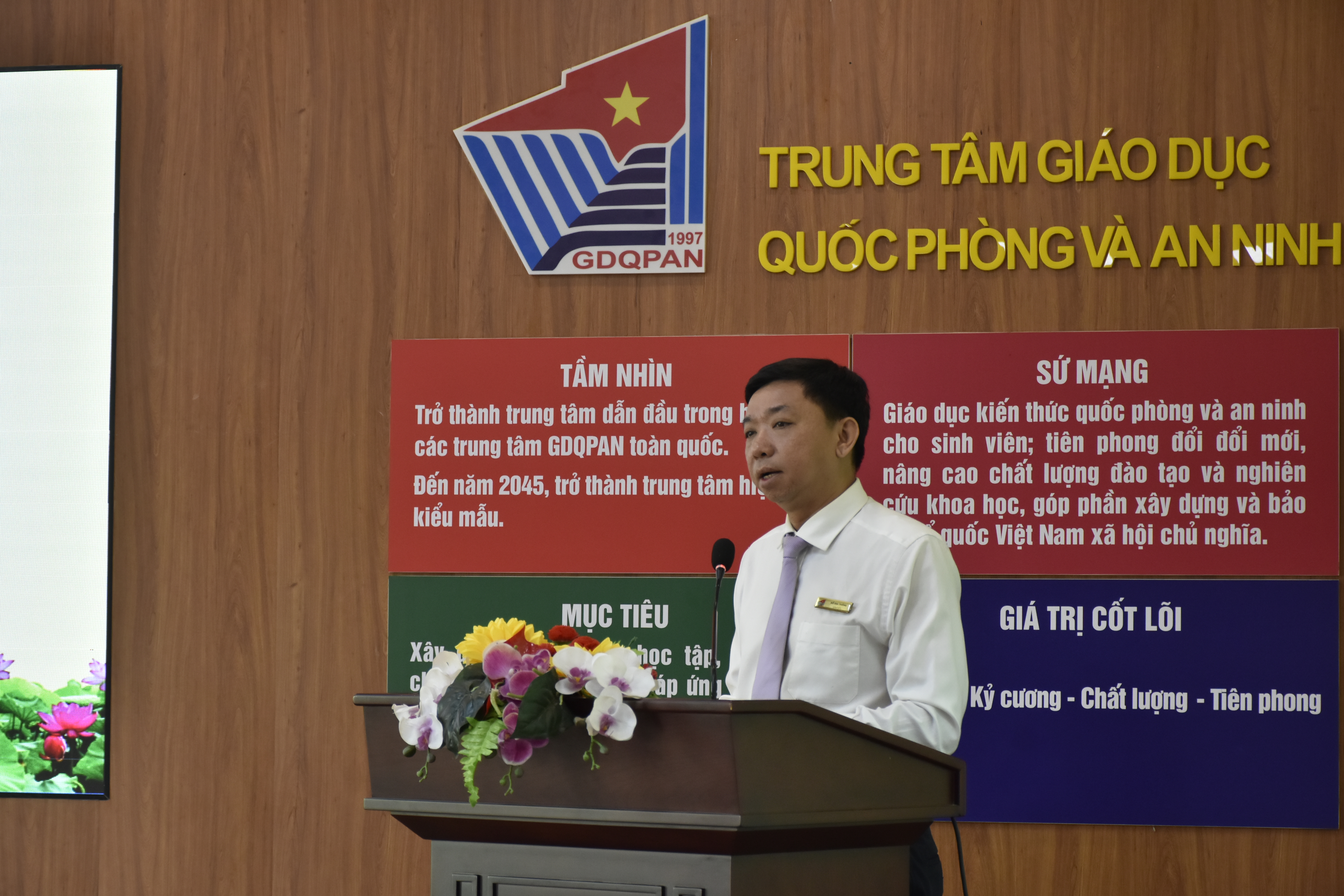 (22/12/2025) Sáng ngày 22/12, tại phòng họp Trường Sơn, Đảng ủy Trung tâm Giáo dục Quốc phòng và An ninh (GDQPAN), Đại học Quốc gia Thành phố Hồ Chí Minh (ĐHQG-HCM) đã tổ chức Hội nghị tổng kết công tác Đảng và biểu dương các điển hình “Dân vận khéo” năm 2025. Hội nghị được tổ chức nhằm đánh giá toàn diện kết quả công tác lãnh đạo của Đảng ủy, công tác tuyên giáo và dân vận; đồng thời biểu dương các tập thể, cá nhân điển hình “Dân vận khéo” năm 2025, qua đó đề ra phương hướng, nhiệm vụ và giải pháp thực hiện nhiệm vụ chính trị năm 2026.