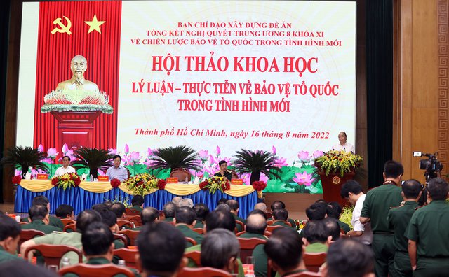 Sáng 16/8, tại TPHCM, Ban Chỉ đạo xây dựng Đề án Tổng kết Nghị quyết Trung ương 8 khóa XI tổ chức Hội thảo khoa học "Lý luận - Thực tiễn về bảo vệ Tổ quốc trong tình hình mới". Chủ tịch nước Nguyễn Xuân Phúc, Trưởng Ban Chỉ đạo, chủ trì Hội thảo.