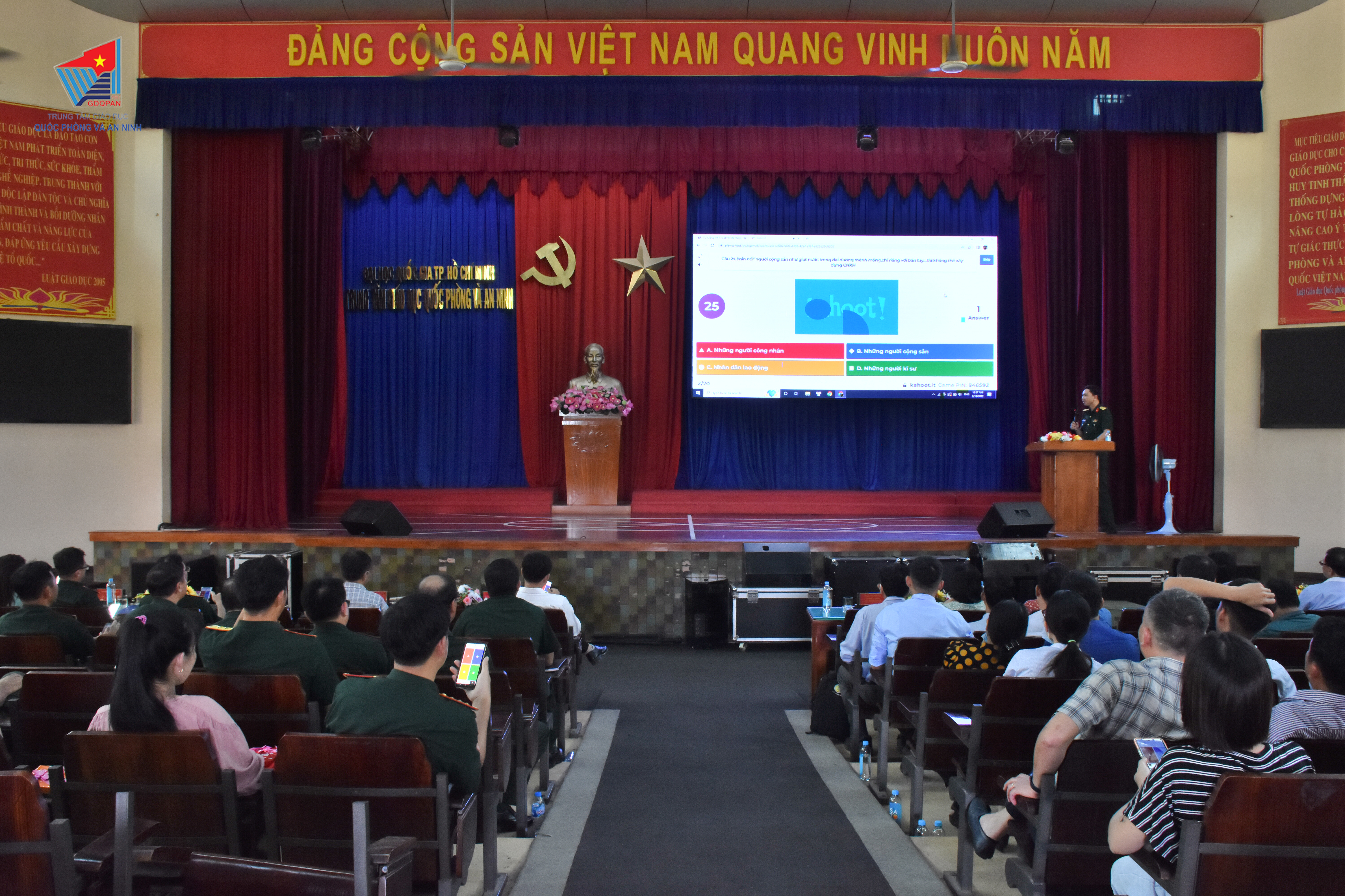 Sinh hoạt chuyên đề tư tưởng Hồ Chí Minh với công tác dân vận, toàn thể Hội nghị đã tham gia thi trực tuyến tìm hiểu kiến thức về công tác dân vận trên nền tảng ứng dụng Kahoot. Nội dung thi gồm: tư tưởng Hồ Chí Minh, chủ nghĩa Mác-Lênin về công tác dân vận; quan điểm, chủ trương của Đảng, Nhà nước về công tác dân vận; vai trò của quần chúng Nhân dân, của Mặt trận Tổ quốc Việt Nam và các tổ chức chính trị - xã hội đối với công tác dân vận; vị trí chiến lược công tác dân vận trong tình hình mới. Kết quả, đã chọn ra và trao giải thưởng đối với 03 đồng chí có điểm thi cao nhất.